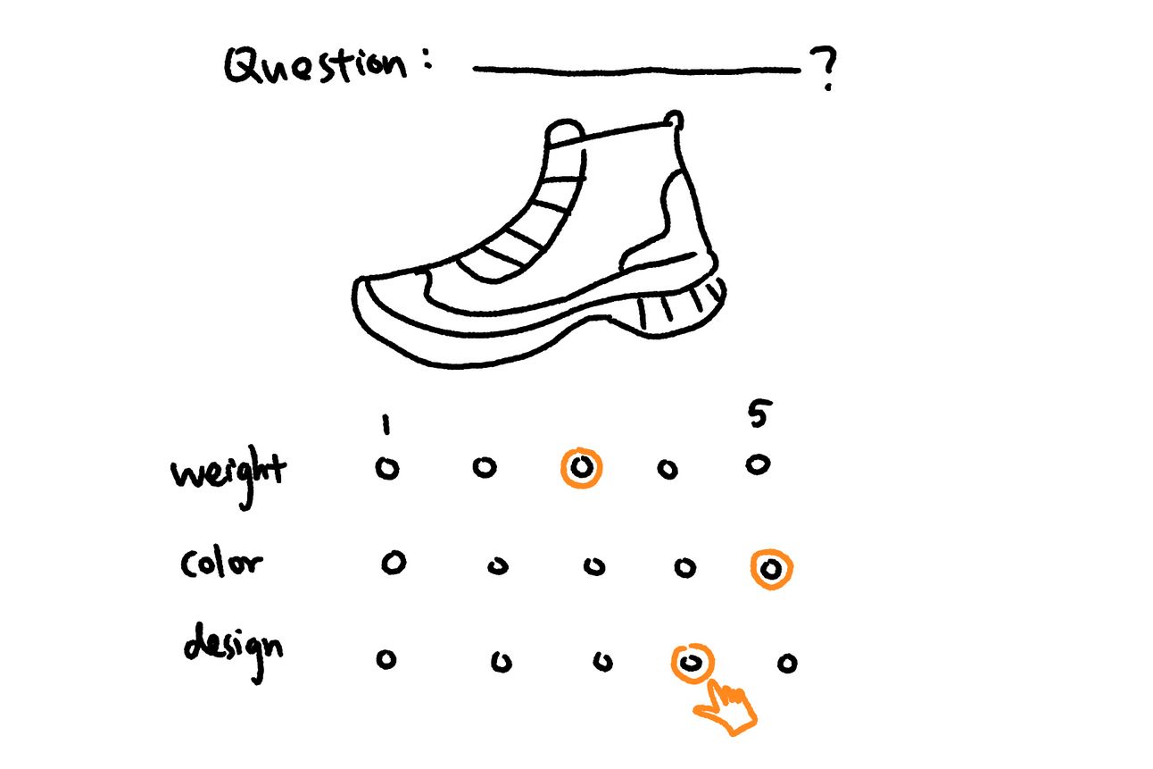 When evaluating existing products to understand user perceptions, identify problems, and uncover design opportunities, matrix questions can be highly effective. Instead of creating multiple consecutive multiple-choice questions, a matrix format condenses multiple related questions into a structured table, allowing participants to rate different attributes using the same scale.