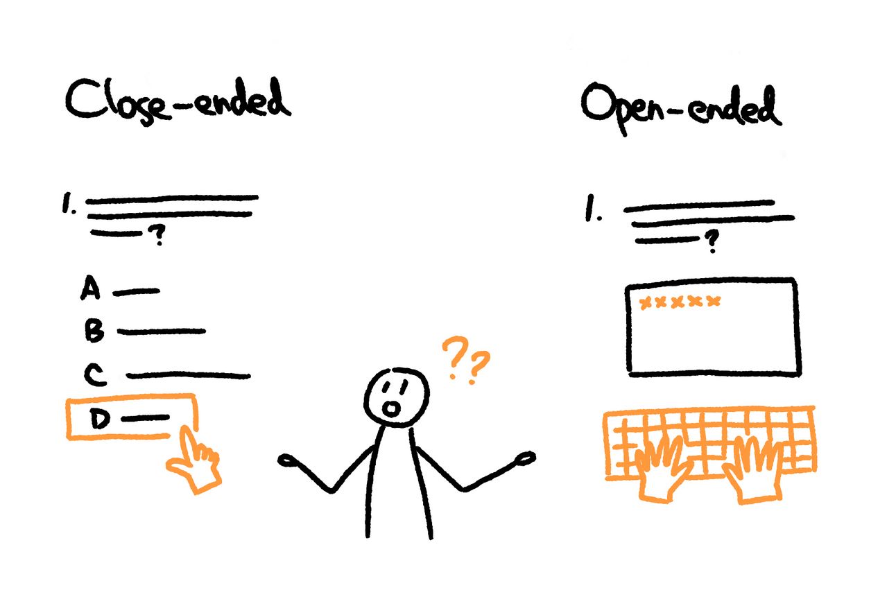 To put it simply, open-ended questions require participants to type their answers, while closed-ended questions allow them to simply click on a response. It’s clear that open-ended questions take longer to complete, which contradicts one of the key principles of user-friendly questionnaires I discussed in my previous post. The longer a questionnaire takes, the more likely participants are to experience fatigue, which can lower the quality of the data collected. In general, I don’t recommend using open-ended questions unless absolutely necessary—only for cases where a question truly cannot be answered through predefined choices.