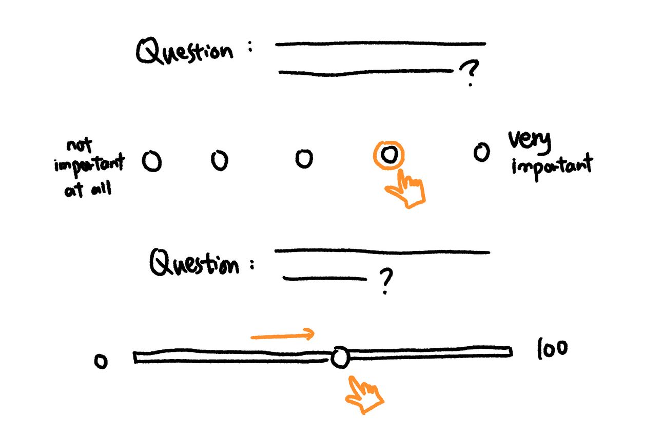 Using a slider-based scale instead of traditional numbered options (such as a 1-5 or 1-10 scale) can improve data accuracy for even more precise and user-friendly responses. However, when using sliders, it’s essential to ensure clarity in scale interpretation so that participants understand what the endpoints and middle values represent.